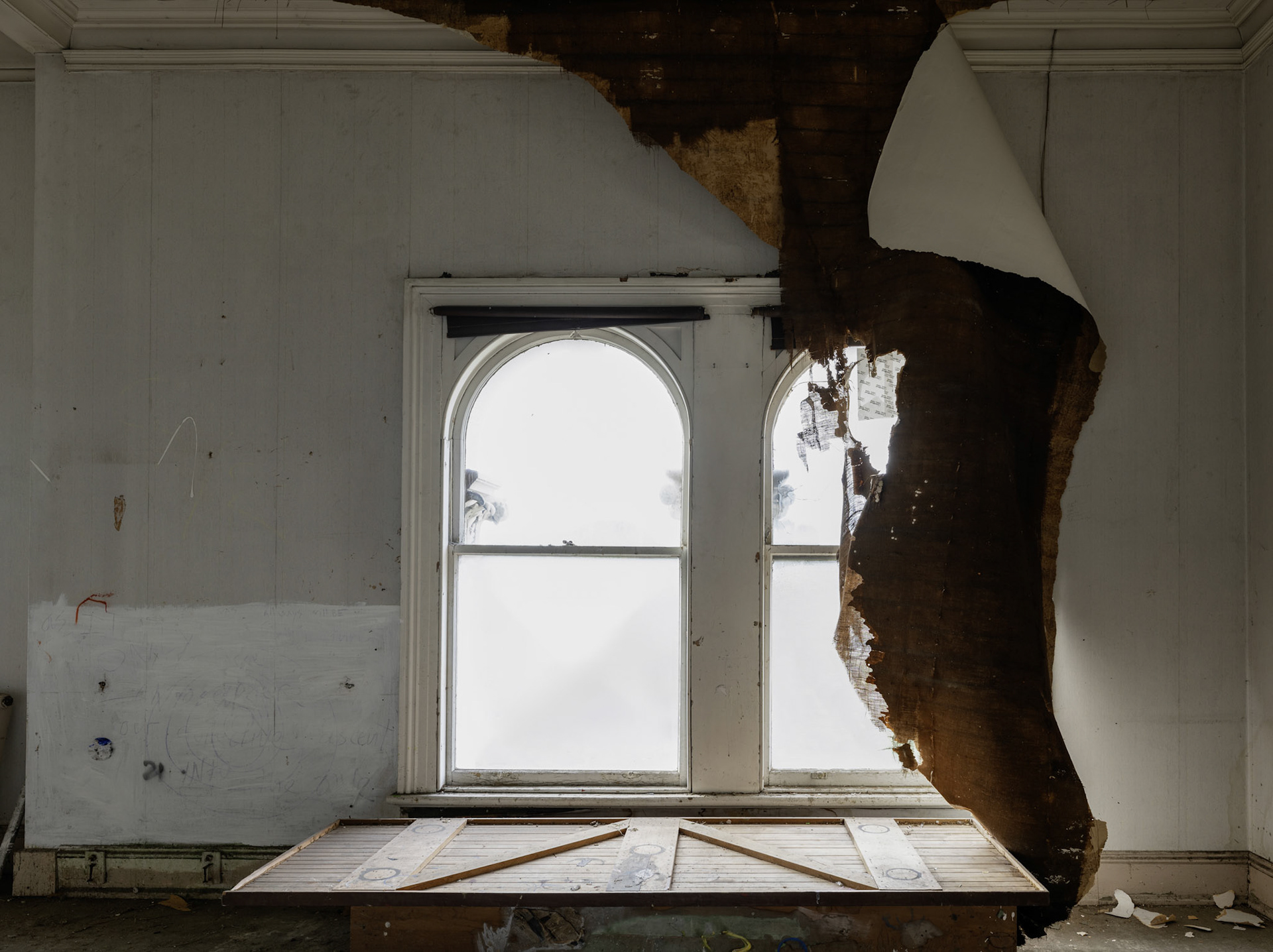 Adrienne Martyn’s series 'heart/mind' presents large-scale photographs focusing on the hospital’s interior spaces. Empty rooms, corridors, and temporary living areas are shown with careful attention to light, surface, and detail. Without people present, the images allow the building itself to come forward, marked by time, adaptation, and traces of past use. The photographs hold a quiet stillness, inviting viewers to look closely at spaces many might recognise, but perhaps have never seen in this way.